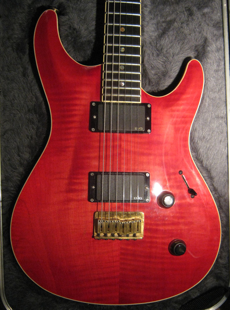 | Remarks: This one is branded "Fender". Pickups not original, Zakk Wylde EMG 81 & 85 Set. Crimson Red Transparent (clear). | ||