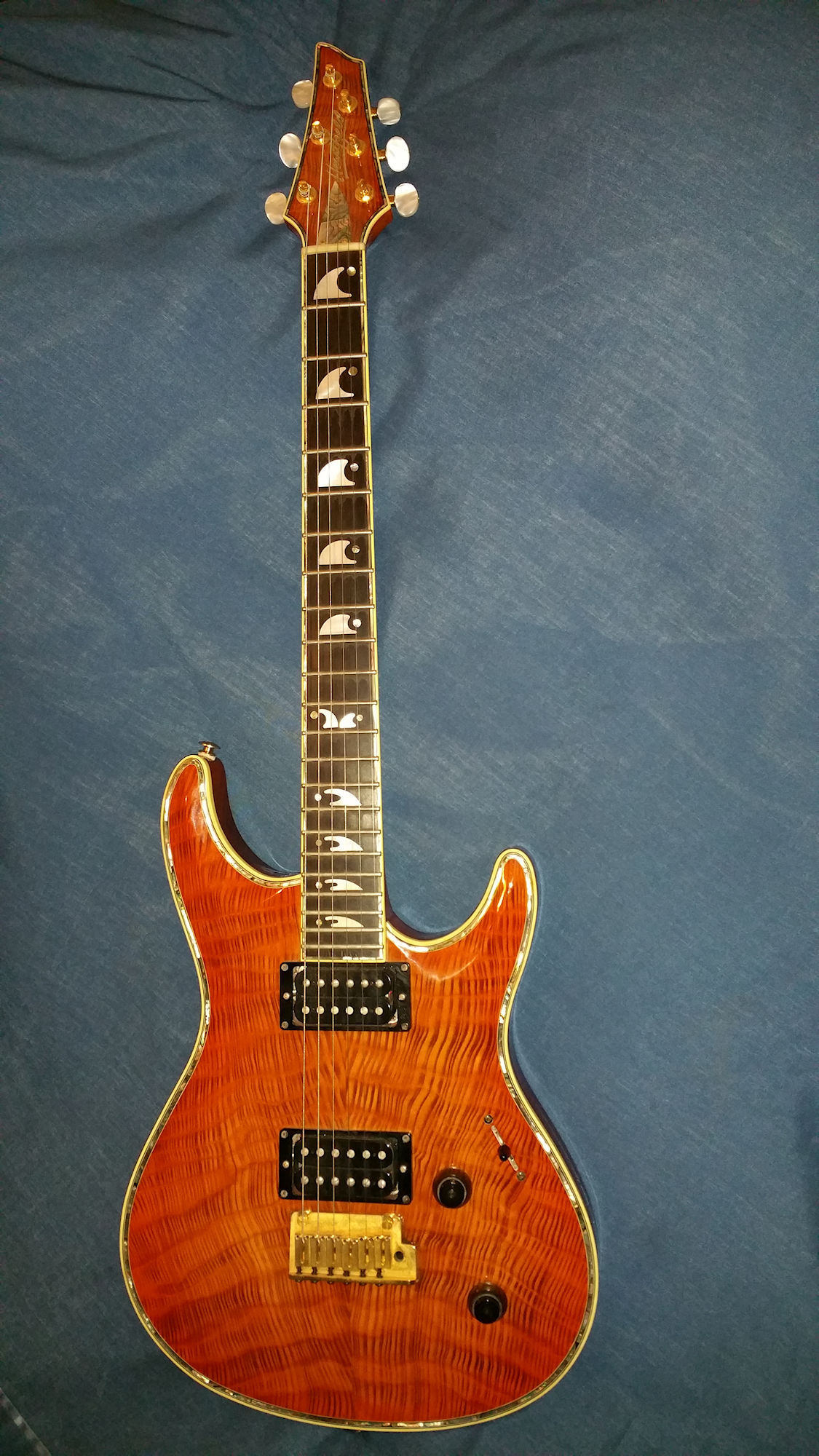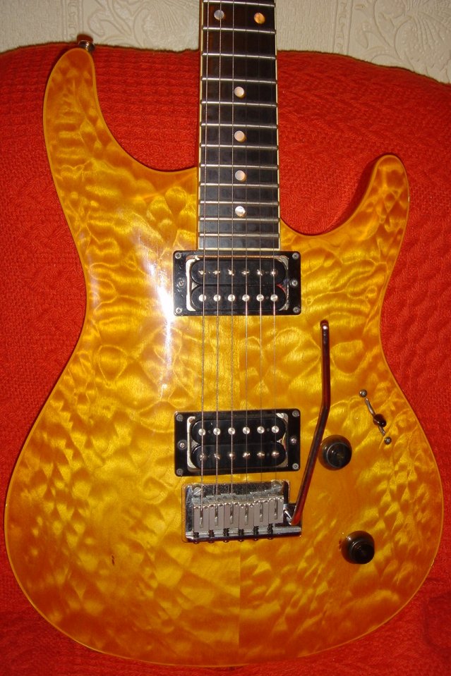 | Remarks: This colour is Antique Burst, and it's got another rather lovely tigerstripe top. | ||
