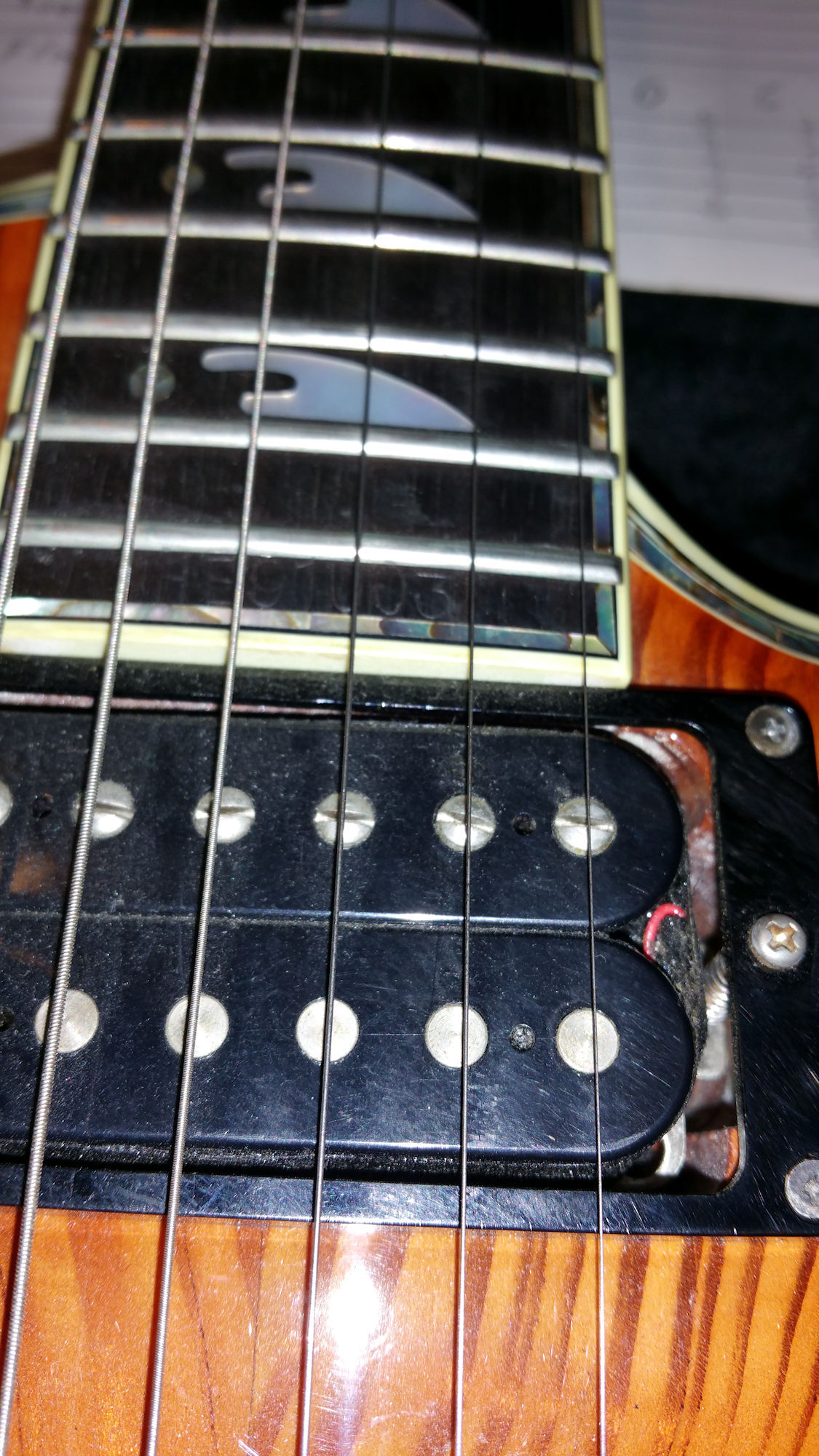 | Remarks: The colour is Antique Burst, with a wild flame maple top. Controls are not original. | ||