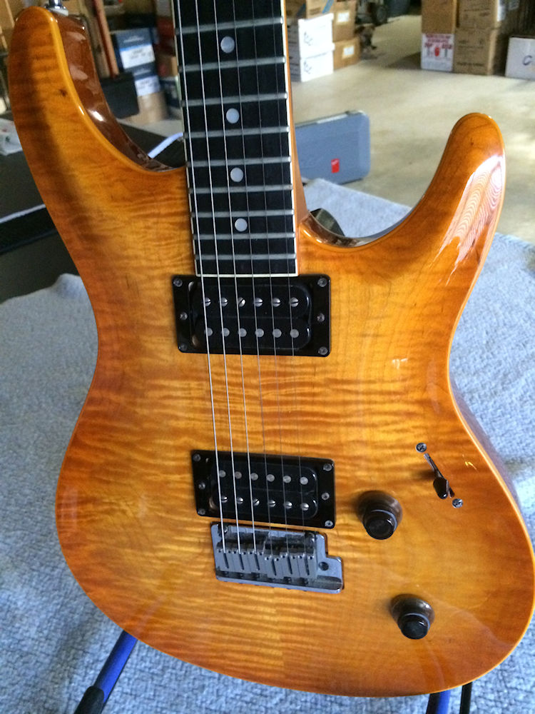 | Remarks: This Amber Elan II has a rather spectacularly quilted maple top. | ||