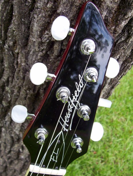 | Above photo credits: The left picture was ruthlessly lifted off the previous Heartfield by Fender site, just before it went the way of the Dodo (picture by then owner Jim Einarson). The right picture is from a previous owner, the late Al Reader. | ||