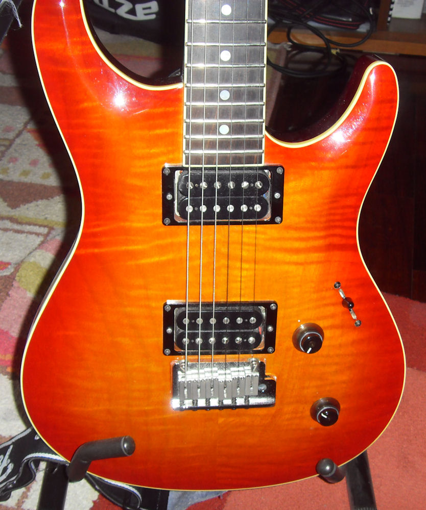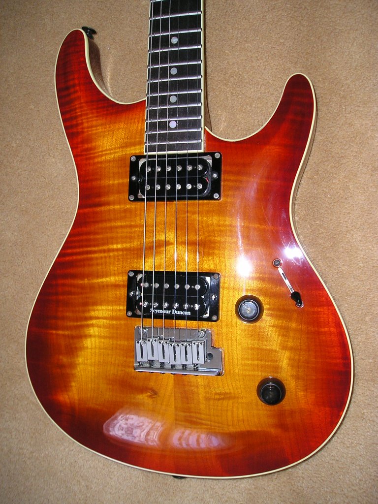 | Remarks: The colour is Antique Burst, with very tight flames in the maple top. | ||