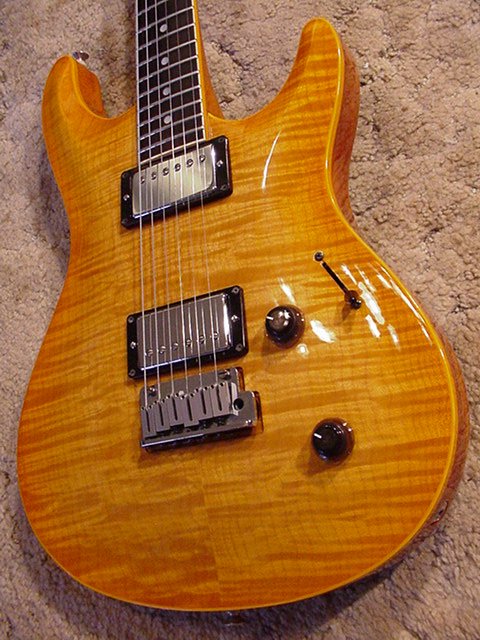 | Remarks: Very nice top on this Amber finish guitar. | ||