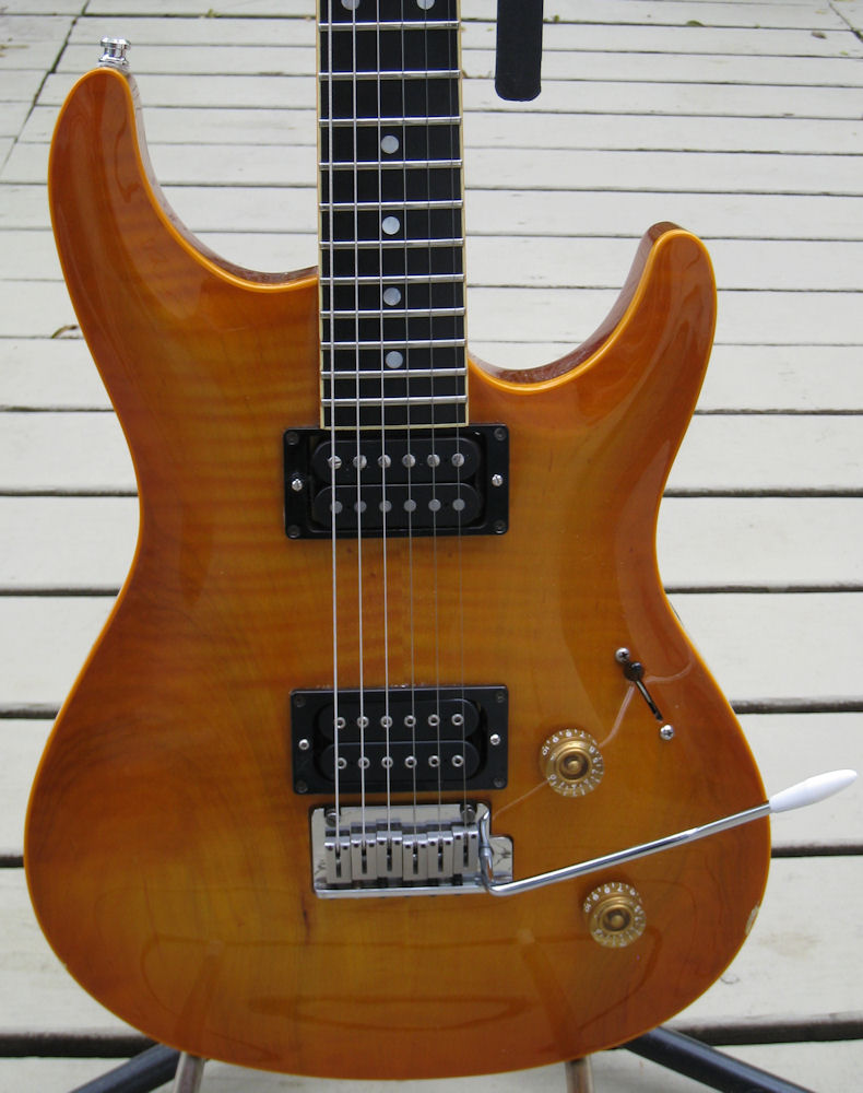 | Remarks: This Amber Elan II has a nice maple top. | ||