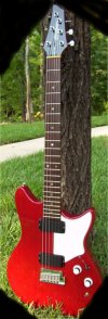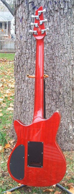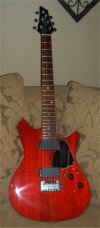| Remarks: The colour is Crimson Transparent. The guitar has a 3 way switch (rather than 5 way) and a coil tap mini toggle. The white plastic parts could be original or replacements. The pickguard is held on with adhesive rather than screwed in (see - no screw holes!). The nut was replaced. | ||