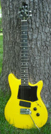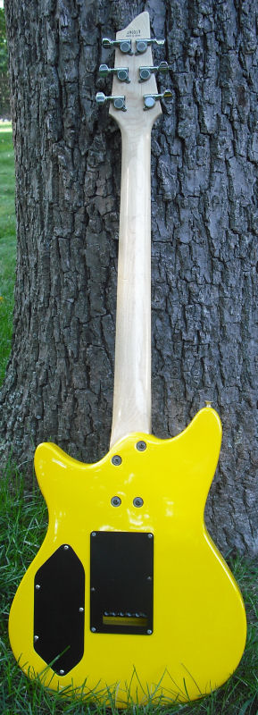 | Remarks: It's got RR7 stamped on heel and on neck pocket. This model adheres to the RR7 definition according to the Japanese documentation, and has a single coil pickup at the neck. The colour is Revolution Yellow known from the Japanese catalogue. Also, the tremolo cover is different and it has a maple unpainted neck. | ||