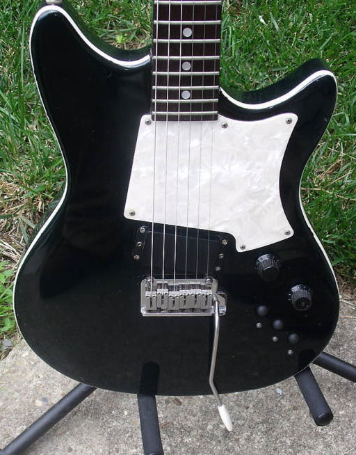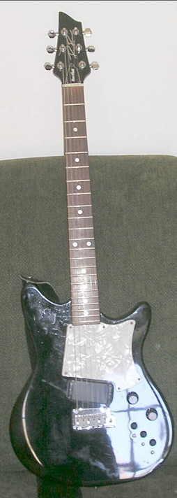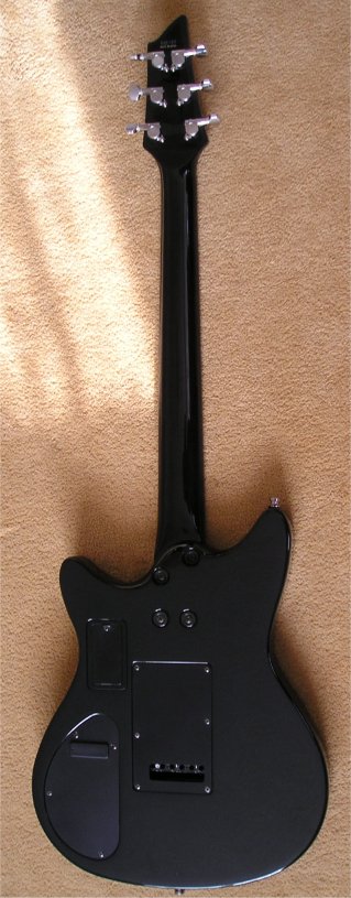 The RR9 (RR9D in Japanese documentation) has an alder body, maple neck, rosewood fretboard with dot inlays, a single Heartfield active humbucker, 22 frets and a fixed bridge with string-through-body design. The difference with the RR8 is that it has a Fender American standard tremolo an a 648 mm scale length (but the same 12" (305 mm) neck radius).