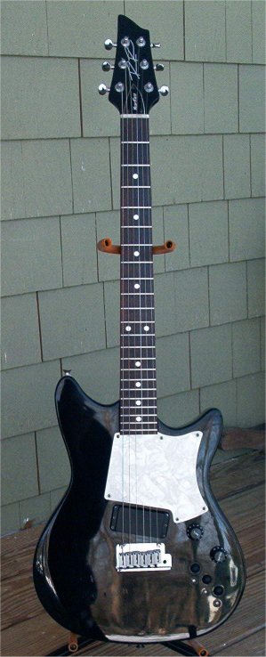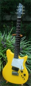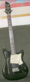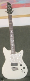 | Remarks: This guitar was bought in 2004 after having hung, new, in the shop...for 15 years! The store owner swapped the tremolo with that of a Strat... The colour is Frost Red. | ||