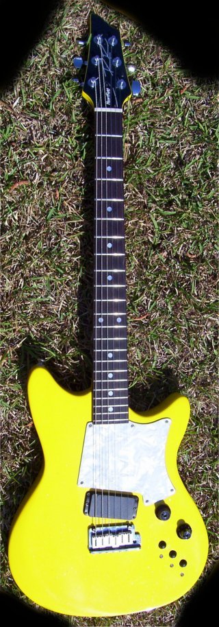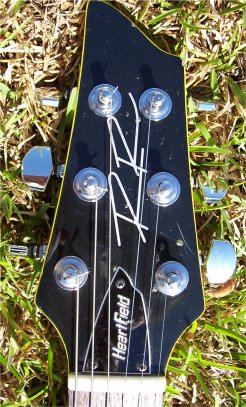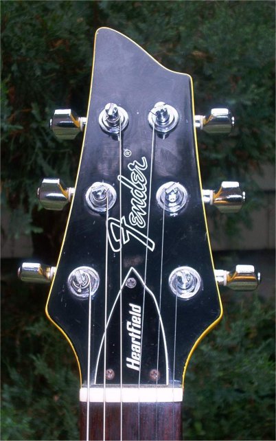 | Remarks: Yellow Sparkle finish. The unusual thing about this guitar is that it is Fender-branded - with Heartfield mentioned only on the truss rod cover. | ||