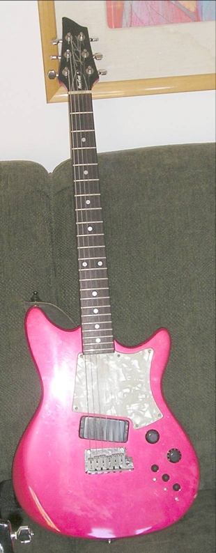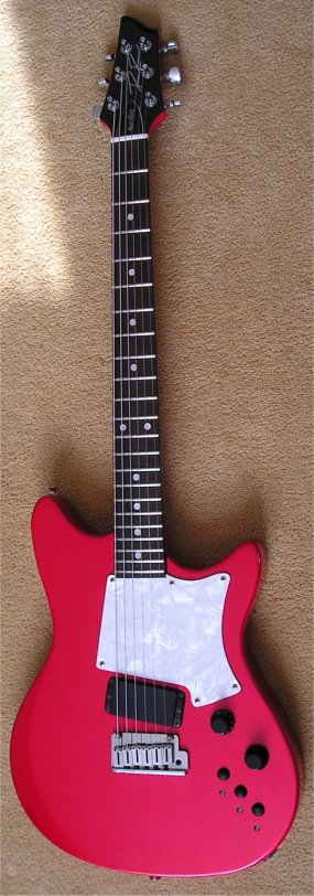 | Remarks: This colour is Frost Red. It has a screw-in tremolo. | ||