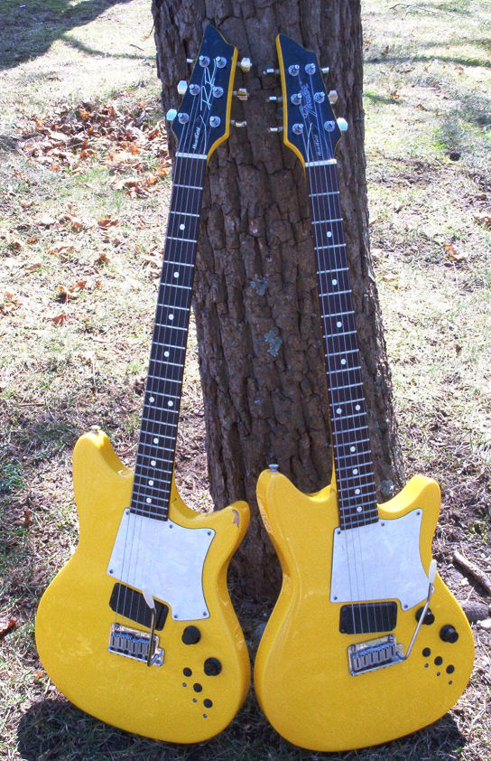 | Remarks: Yellow Sparkle finish. Do note that the guitar in the first picture on the right is its brother, the very RR9 listed below. Despite their undoubted similar production date they have different branding (this one is Heartfield, the other is Fender). These two instruments have been reunited 17 years after the production. | ||