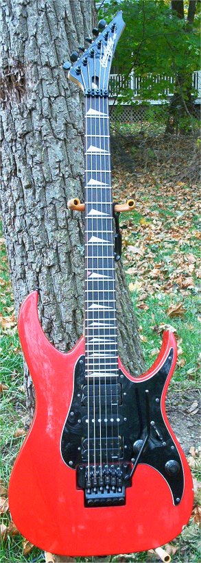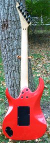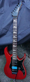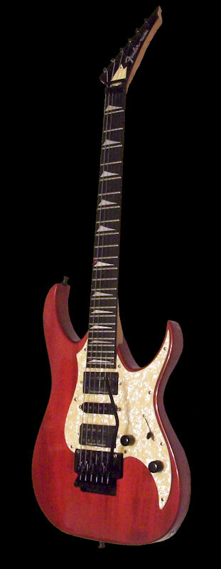 | Remarks: The colour was Montego Black, however it was then refinished transparent-red, with a new pickguard and Schaller Floyd Rose 15370 bridge added. | ||